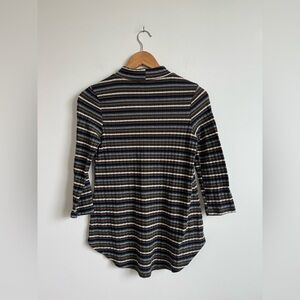 Multicolor striped ribbed keyhole mock neck top size medium with 3/4 length sleeves