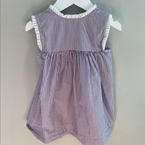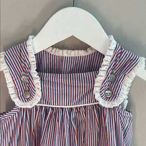 Adorable kids dress featuring a charming striped pattern and ruffle trim. Perfect for any occasion.
