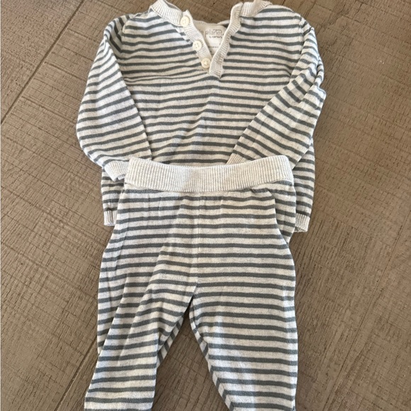 Adorable striped kids matching set featuring a cozy sweater and pants. Perfect for stylish comfort.