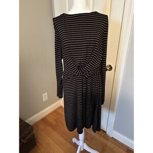 Striped Knee Length Dress with tie At Waist By Loft Large