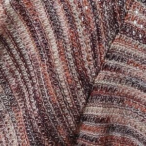 Stylish knit top with multicolor stripes. Features elbow-length sleeves and a comfortable fit. no tag size but fits like a large