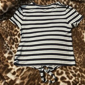 Stylish knit top featuring navy and cream stripes. Includes a chic tie detail at the front. Super cute ties in the front πππ