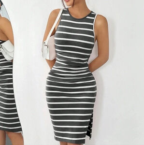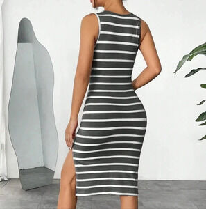 Striped Knitted Sleeveless Split Dress
