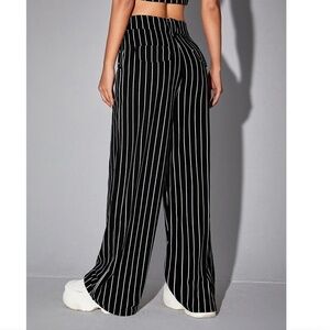 Striped Lapel Collar Crop Waistcoat & Striped Print Suit Pants