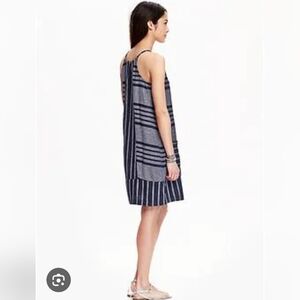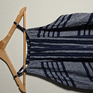 Striped Linen Blend Sleeveless Shift Navy Dress Summer Boho Spring Dress