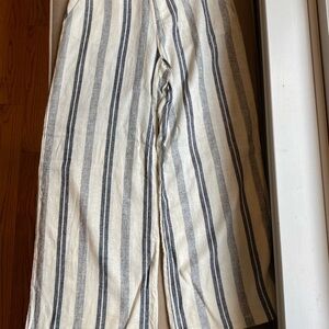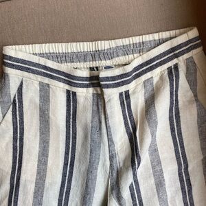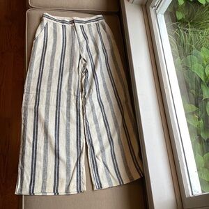 Striped linen cropped pants in excellent pre-owned condition! Off white and black stripes. Size XS