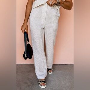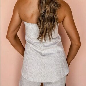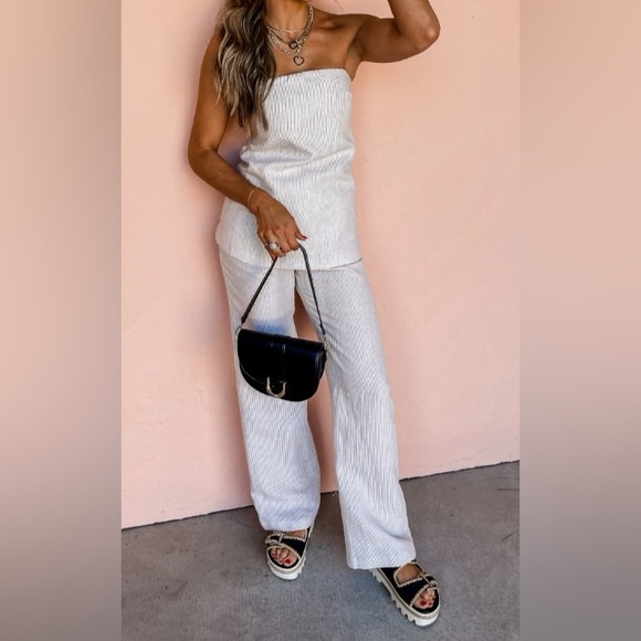 Olivaceous Striped Linen Fabrication Strapless Top & Pants