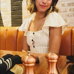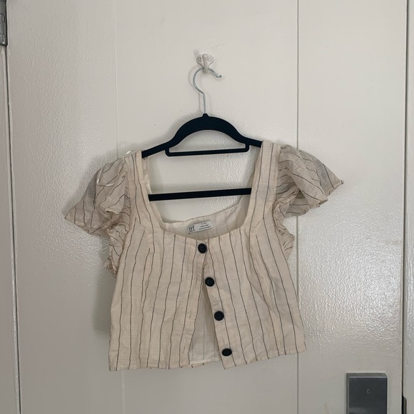 Adorable striped linen blouse from zara. Can be dressed up or down.