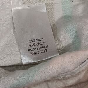 Breathable and lightweight linen–cotton blend mini skirt, perfect for warm days or casual outings. Features a flattering elastic waistband, pockets, and multicolor stripe pattern in soft beachy tones (navy, orange, beige, mint). Versatile with tees, tanks, or sandals. Fabric tag: 55% linen / 45% cotton. Measurements: length ~ 15.5", waist flat unstretched ~ 13" (stretches!). Excellent pre-loved condition — no stains or damage. Machine-washable.