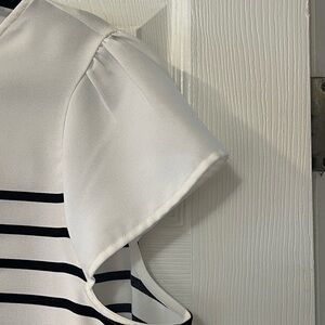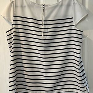 Cute cap sleeves. Ribbon on zipper in back. Lots of life left, true to size, adorable top that isn’t being worn & needs new home!