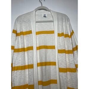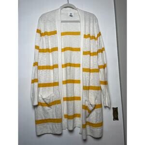 Striped Long Sweater Womens Size XL Academia Open White Cardigan Long Sleeve