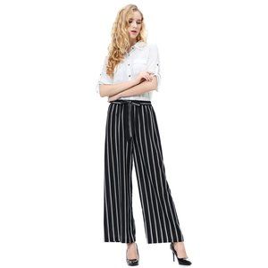 Striped Loose Wide Leg Trousers High Waist Tie Bow