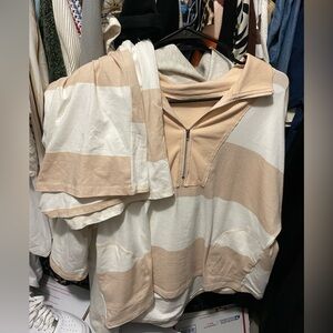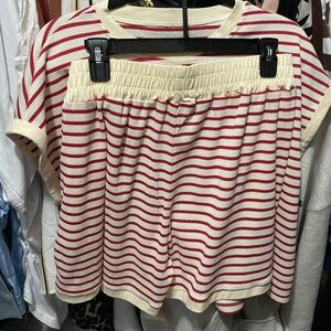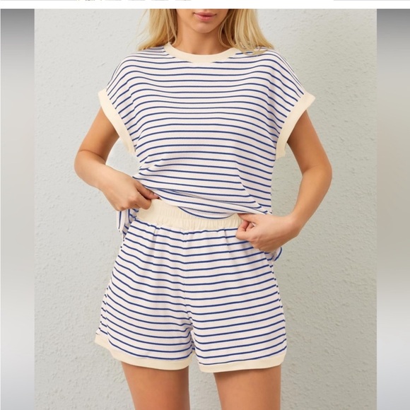 Comfortable lounge set. Features a short-sleeve top and matching shorts. No blue