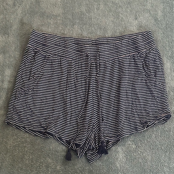 Excellent condition navy and white striped lounge or pajama shorts with elastic waist band, functional ties with tassels, and pockets. Purchased at target. No size tag. Size XL