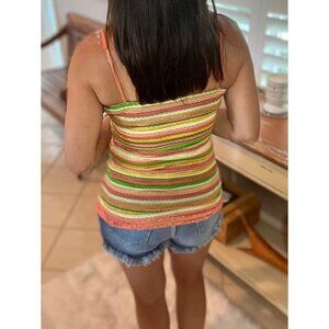 ❤️🔥Striped Low Cut Cleavage Retro Lace Summer Tank Cami Top Tunic Peach 0125
