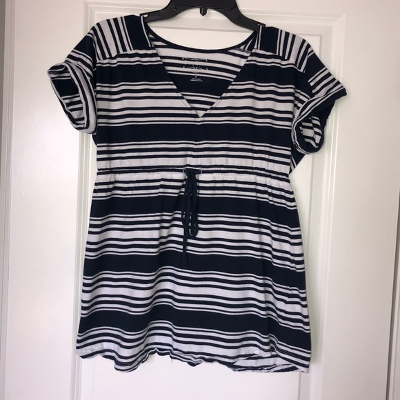 Striped short sleeve navy/white Maternity Top with tie in front