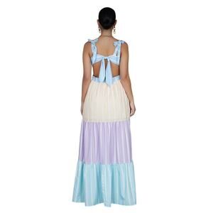 Striped Maxi Dress Womens Color Block Pastel Open Back Summer Gown Long