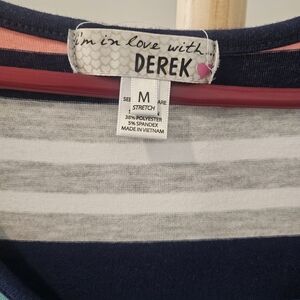 Chic maxi dress with horizontal stripes. Features blue, pink, and gray. Perfect for everyday style.