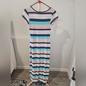 Striped Maxi Dress in Blue, Pink, and Gray