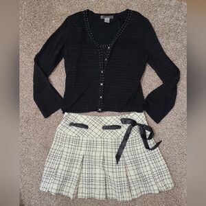 Striped Metallic Thread Beaded Crystal Button Y2k Sweater Tank Top Set