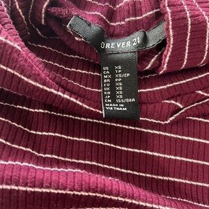 Burgundy dress with white stripes. Ribbed fabric. Forever 21, size extra small. Excellent pre-owned condition.