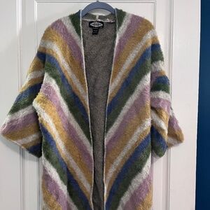 retro style, vintage inspired, chevron stripe, open front maxi sweater. It is stunning! Fantastic quality! Super warm! Drop shoulders. This is a super soft and comfy knit.