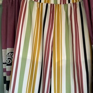 Vibrant striped pants with a mix of colors. Perfect for a bold look. It has very small stain. Am open to reasonable offers