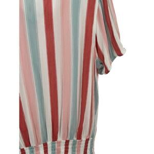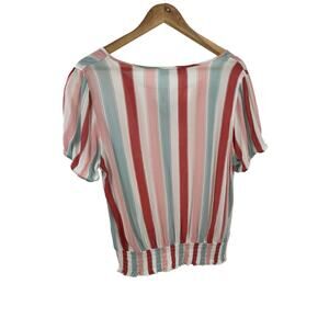 Striped Multicolor Pink Rose Tie Front Top Large Elastic Hem