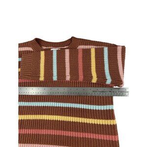 Striped Multicolor Ribbed Knit Sweater Brown Yellow Pink Blue Round Neck Medium