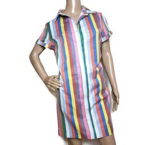 Striped Multicolor Short Sleeve Polo Collar shirt Dress M fun whimiscal summer