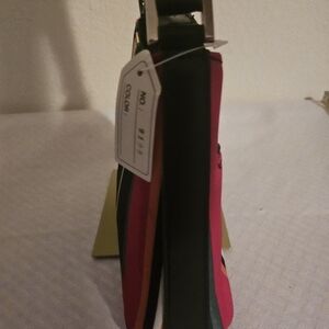 Vibrant and stylish, this multicolor shoulder bag is perfect for adding a pop of color to any outfit. Featuring bold stripes in red, yellow, and black, it's a must-have accessory for fashion-forward individuals.