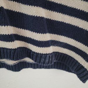 Striped Navy Cream Knit Sweater Short Sleeve Shirt