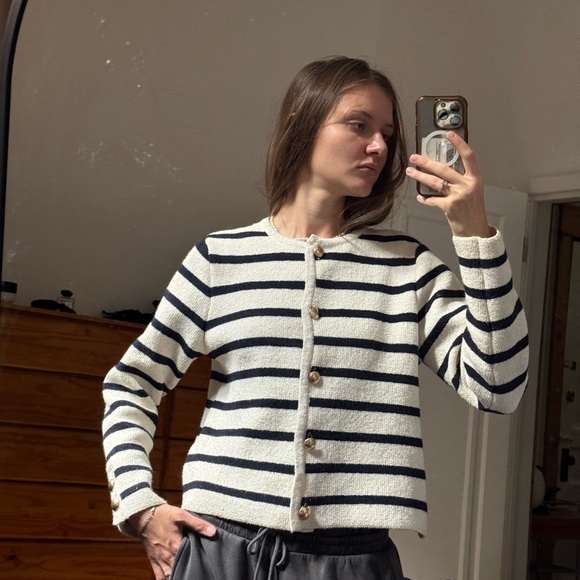 Striped Navy and White Women's Jacket H&M S size