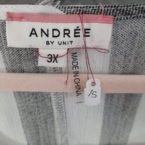 Lightweight, and fun for spring/summer! Gray and white thick stripes, with neon-colored fringe on the sleeves. Boutique brand!
