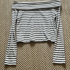 Semi cropped but doesn’t show stomach with high waisted jeans.