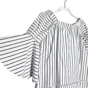 Striped Off The Shoulder Ruffle Bell Sleeve Blouse White Navy Womens Size Small