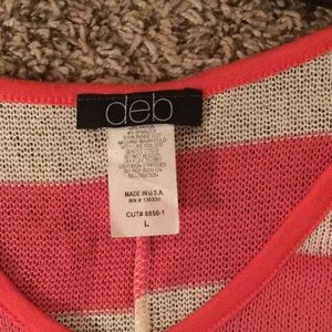 This is a striped off the shoulders shirt that has see through lace sides. It’s only been worn once. The sleeves go down to your elbow.