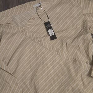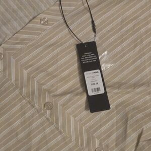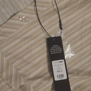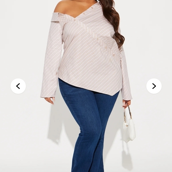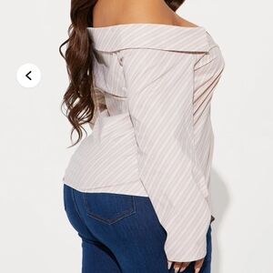 Fashion Nova Stylish off-shoulder blouse with diagonal stripes. Features a unique button design.