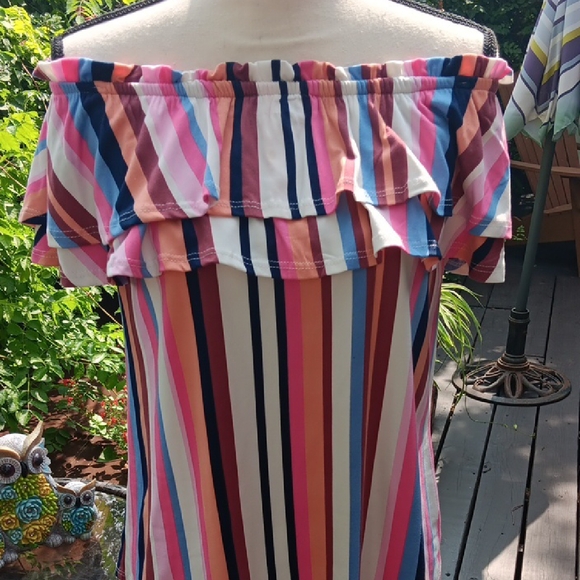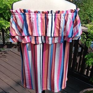 Chic off-shoulder top with vibrant stripes and a ruffled neckline. nwot