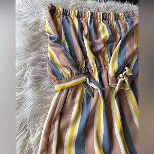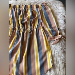 BLUSH off the shoulder dress Striped Medium 9”inseam 18” p2p 30” hem