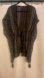 Stylish open-front kimono with colorful stripes and tassels. Arm holes are stitched. Cinches at waist or wear open. Perfect for layering. Tagged a small/medium but can fit a large.