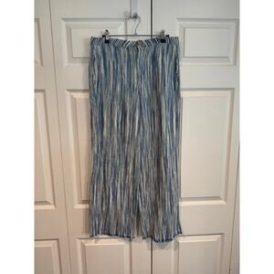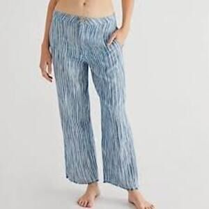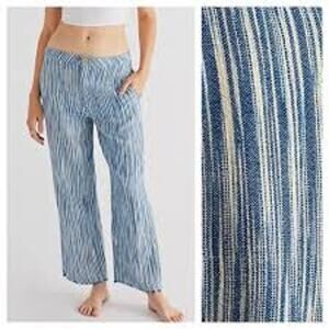 Striped Pants Blue & White Cropped Wide Leg Boho Casual Comfortable