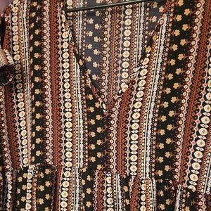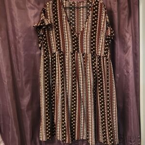 Stylish dress featuring a striped pattern with ruffle detail. Perfect for any occasion.