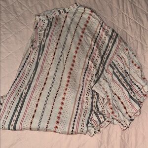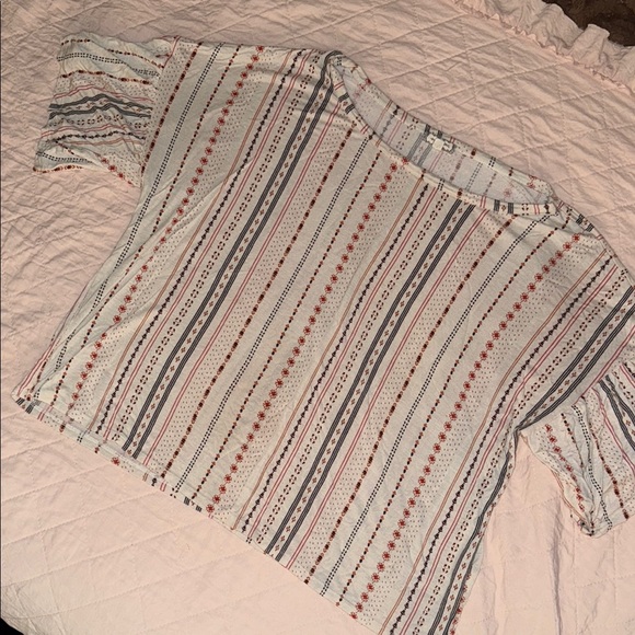 Stylish top with a striped pattern. Features orange, blue, and cream colors. Perfect for casual wear.
