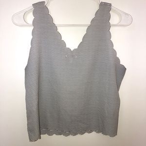 Black and White Striped Pedal Cut Shirt. 100% Polyester. Never Worn!!