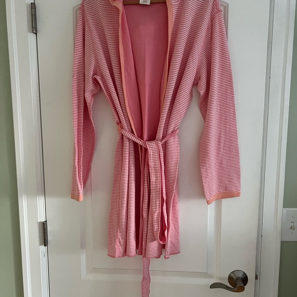 Cozy and stylish, this striped pink robe is perfect for lounging. Enjoy comfort and elegance in one piece.