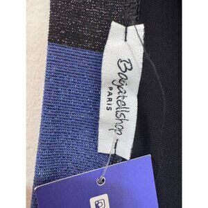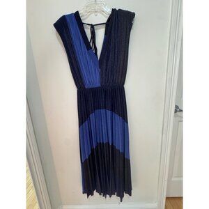 Striped Pleated Midi Dress With Tie Back Detail Black & Blue Size M