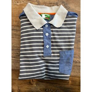 This shirt puts a spin on the classic polo. The material is on the thicker side but it's still breathable.This has been worn once and has no flaws. #polo #pocket #striped #polowithpocket