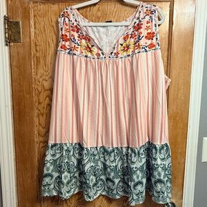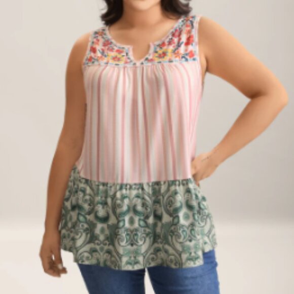 Striped Print Spliced Ruffled Tank Top, super soft material. Size 28 Bloomchic or 5X