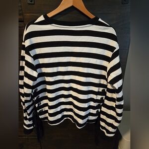 Black and white striped cotton pullover. Super comfortable, I'm a medium and this is pretty roomy. In excellent condition, only worn once. Has tie design on both sides of the bottom. This could be worn along or over a tank/tshirt.